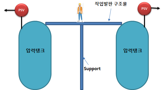 또한, 지붕이 찢어지도록 설계된 상압탱크의 Roof 설계 조건과는 달리 PSV가 설치된 압력탱크는PSV로만 압력이 배출되므로 압력탱크 상부에 작업발판이 설치가 가능할 것입니다.