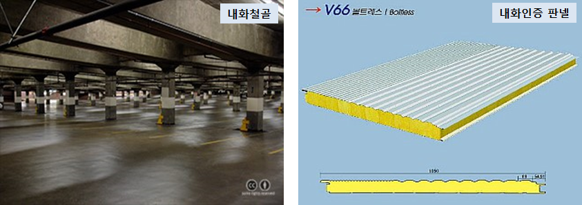 • 철골조 그 자체는 내화구조가 될 수 없지만 철망모르타르나 벽돌 등으로 일정 두께 이상 덮어씌우면 인정