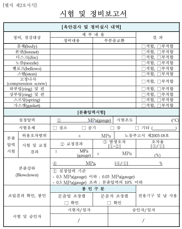 ✅ 산업안전보건기준에 관한 규칙 261조에 따라 설치된 안전밸브의 적정 토출 검사 건 2020-10-22 (1AA-2010-00427106)