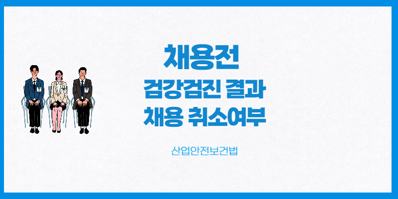 서류전형과 면접전형을 통과하여 취업하기 직전에 건강검진을 실시합니다. 이때 받게되는 건강검진은 산안법상에서 실시하는 근로자건강검진 (일반건강검진, 특수건강검진)에 해당되지는 않습니다. 다만, 채용 예정인 자가 건강상에 큰 문제가 없는지 회사가 자체적으로 검증하는 단계라고 볼수 있습니다.