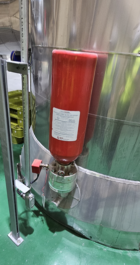 분진폭발의 확산을 방지하기 위해 폭발이 발생한 설비에 폭발억제제를 고압의 질소로 공급함으로써 폭발을 방지하는 안전장비를 소개합니다. 설비 내부의 화염 또는 압력을 감지하면 폭발억제데가 투입되면서 폭발의 확산을 방지하는 설비입니다.