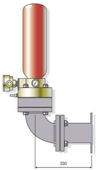 E-HRD 억제기는 분진, 가스 및 하이브리드 혼합물에 대한 모든 유형의 용기, 덕트 및 파이프에 설치하도록 설계되었습니다. 서프레서 밸브는 돔형 디스크와 밀봉 링으로 닫은 다음 질소로 가압됩니다.