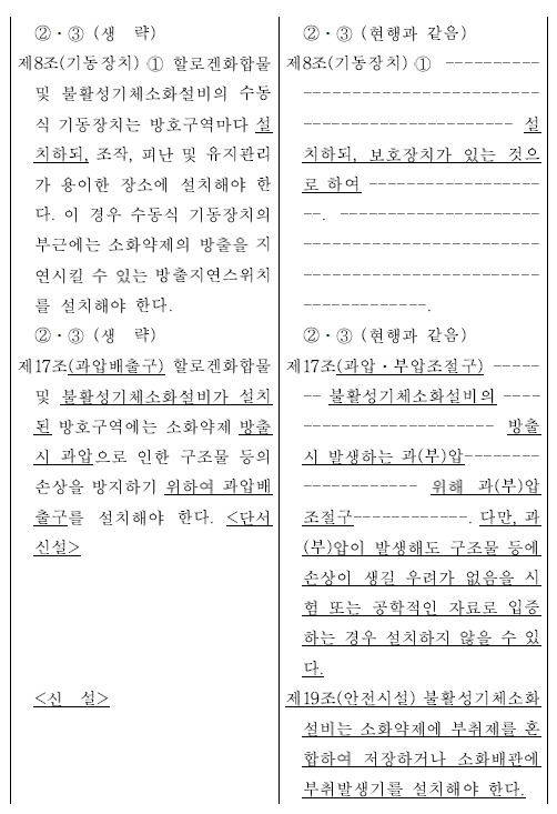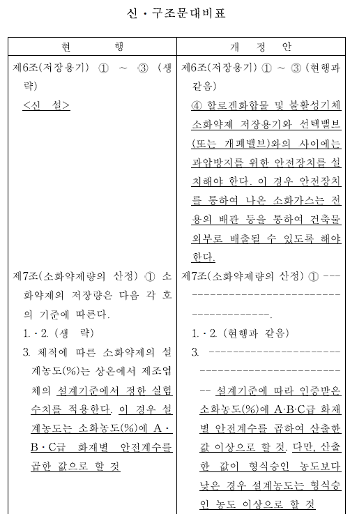 할로겐화합물 및 불활성기체소화설비의 화재안전성능기준 (NFPC 107A) 일부개정고시안