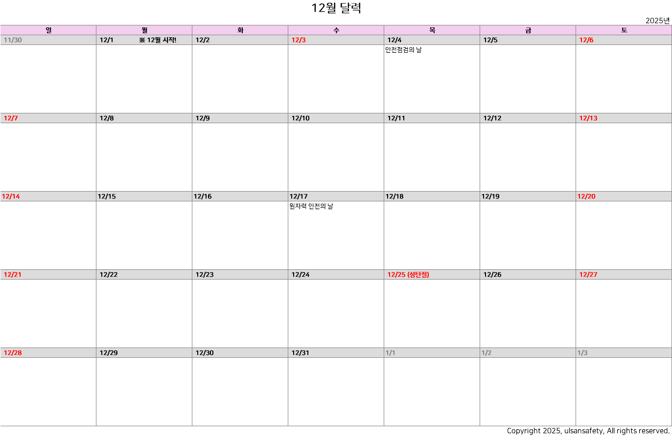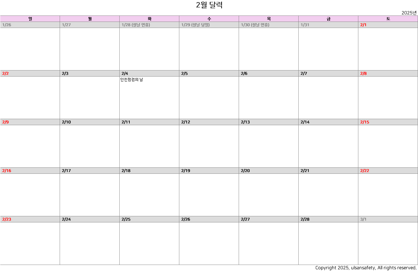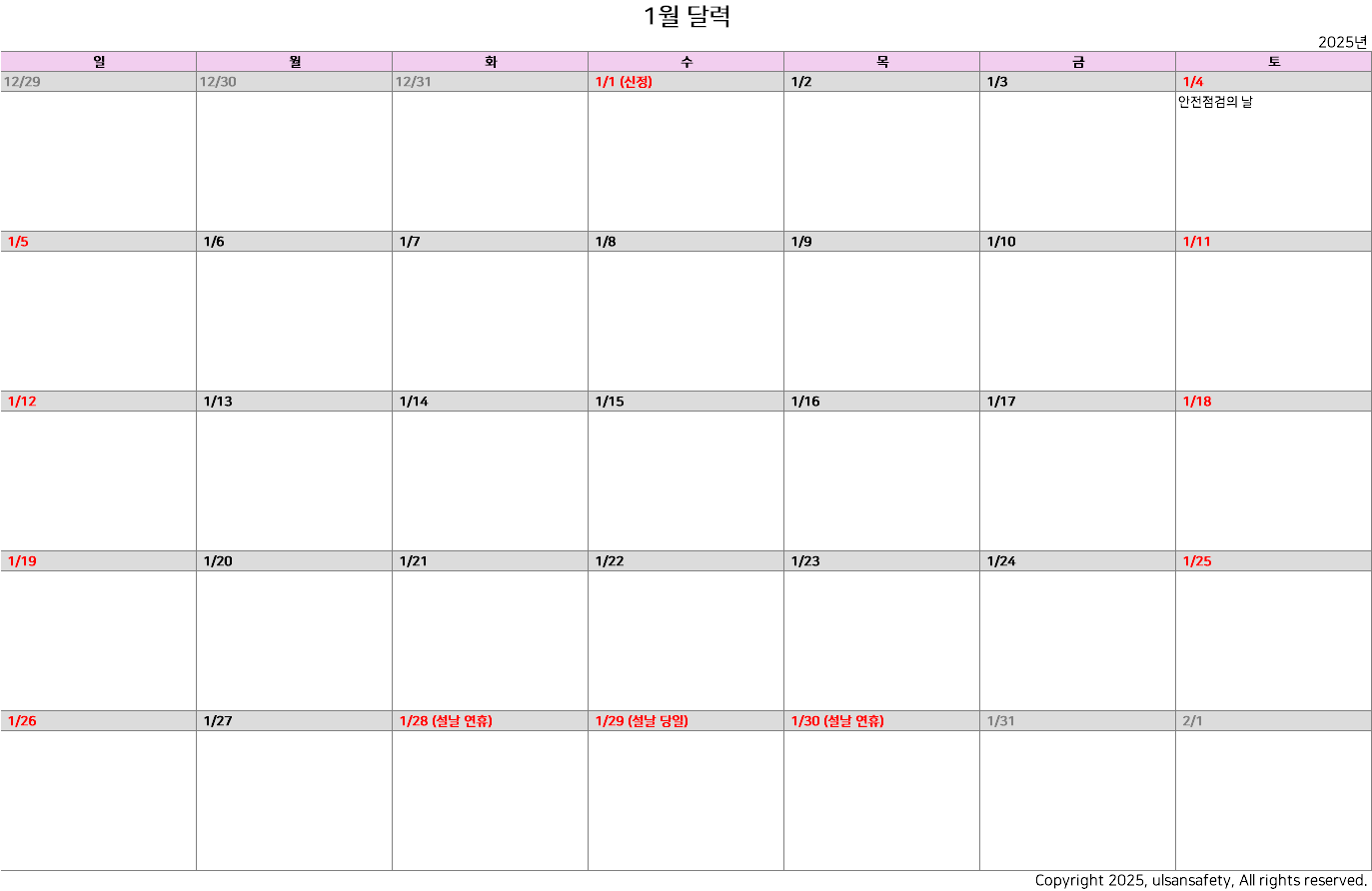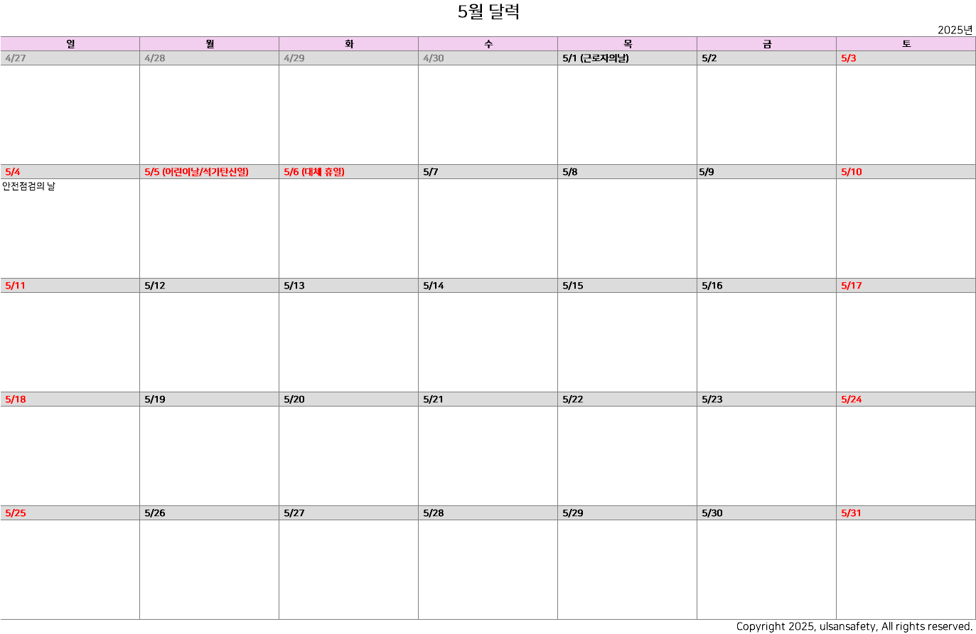 | 2025년 달력 엑셀 - 안전보건환경인을 위한 달력 |
