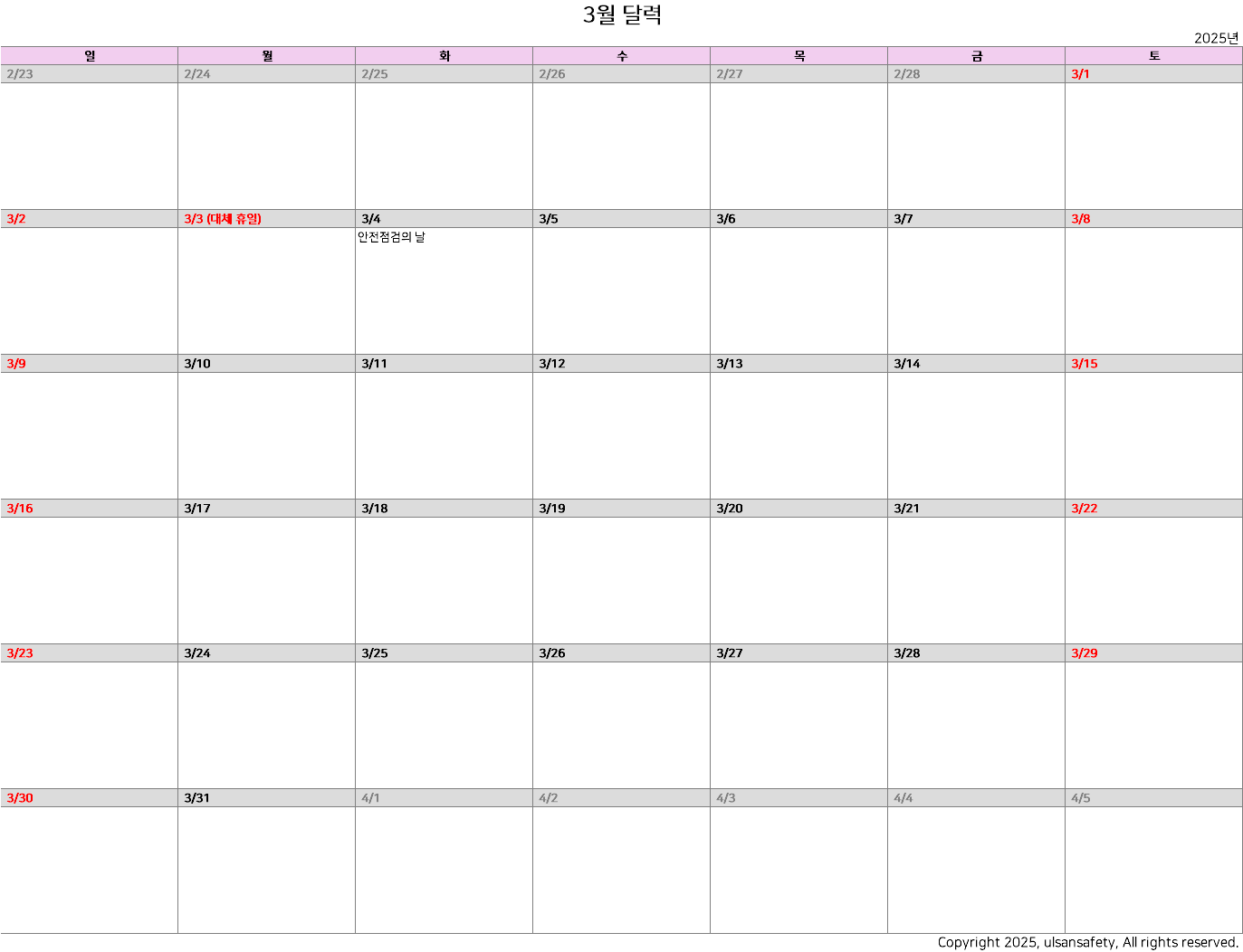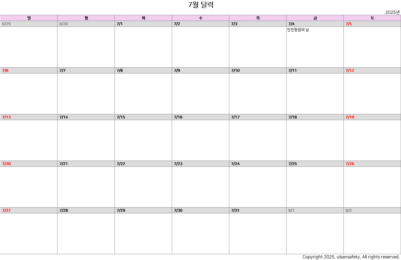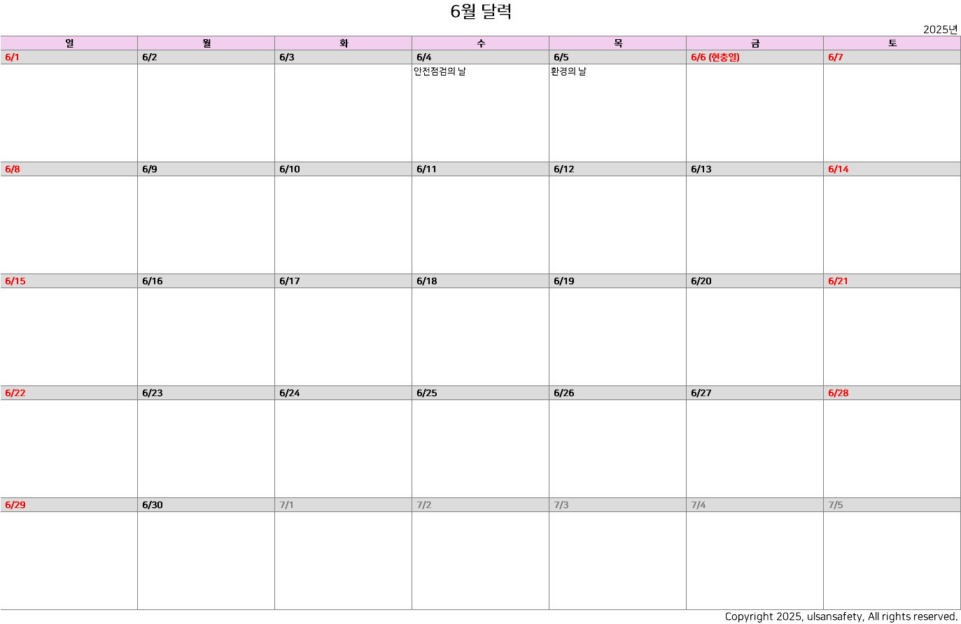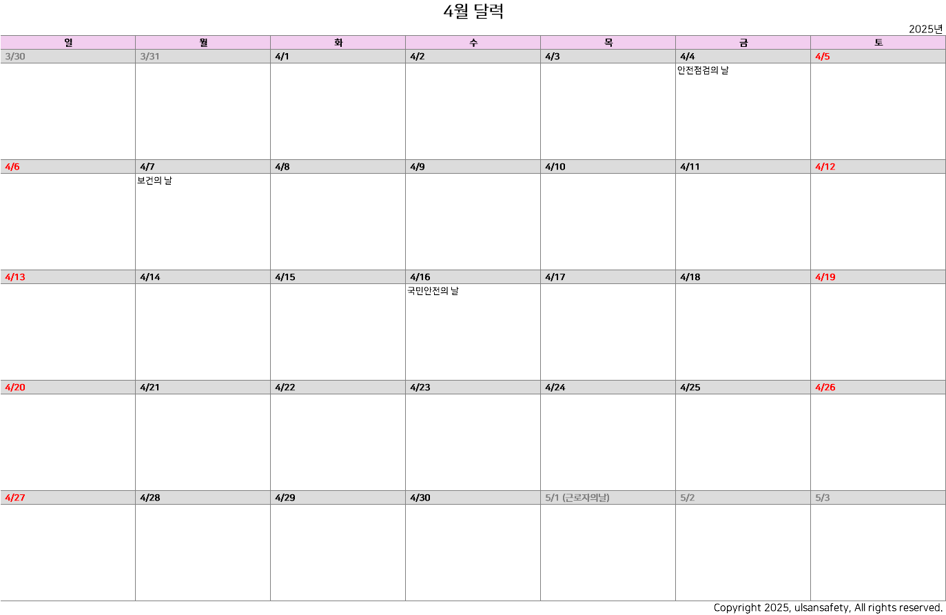 | 2025년 달력 엑셀 - 안전보건환경인을 위한 달력 |