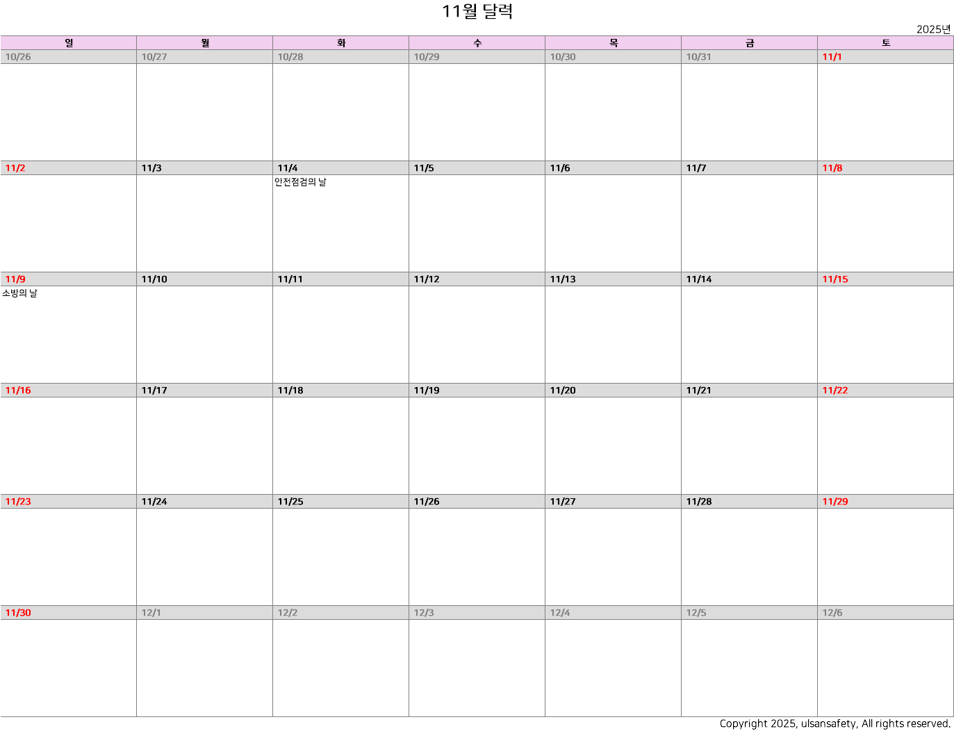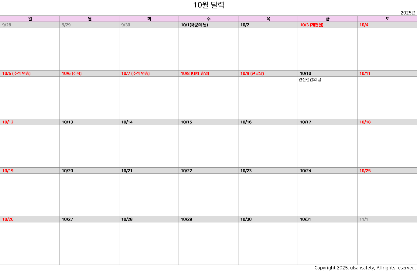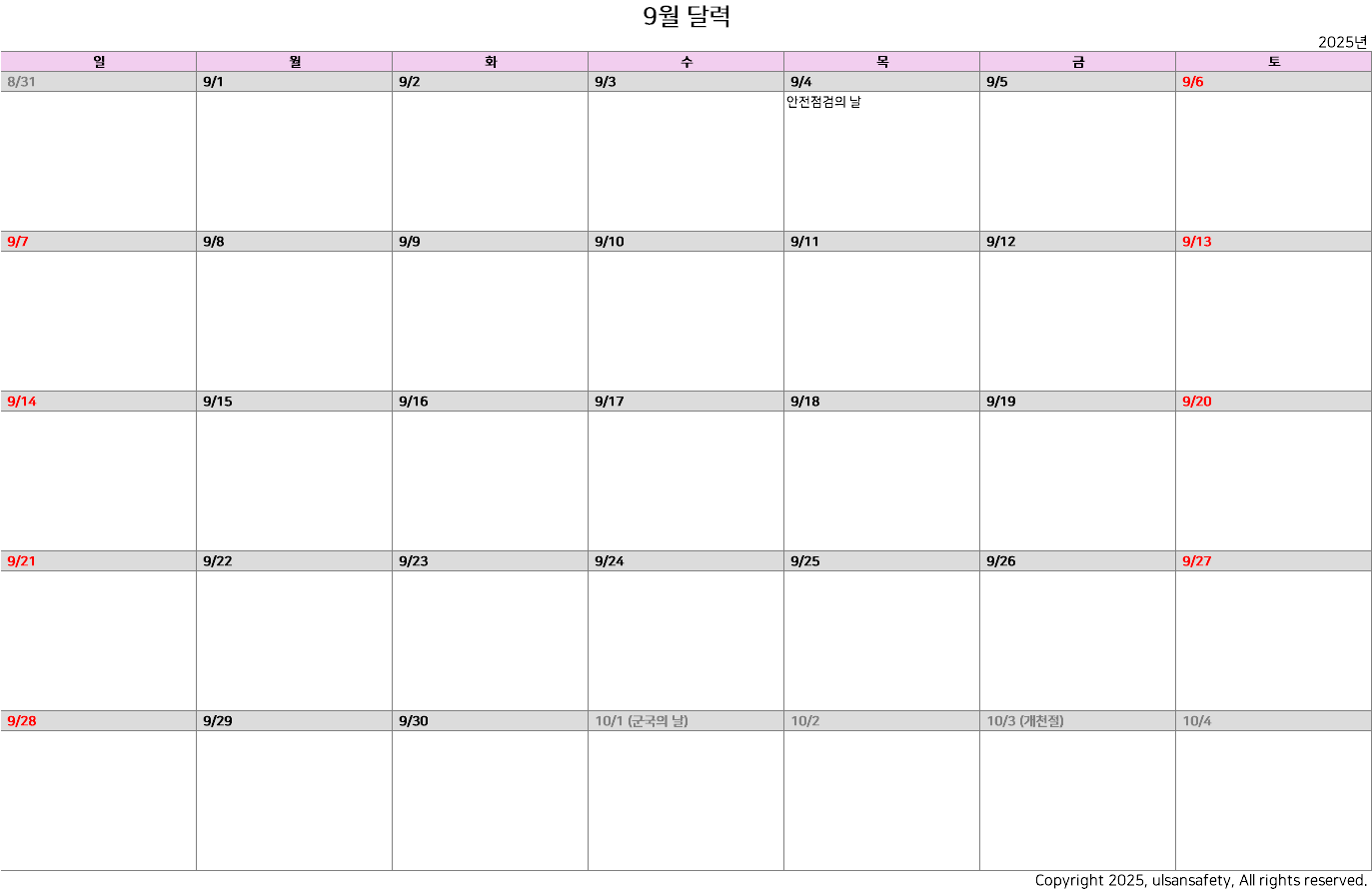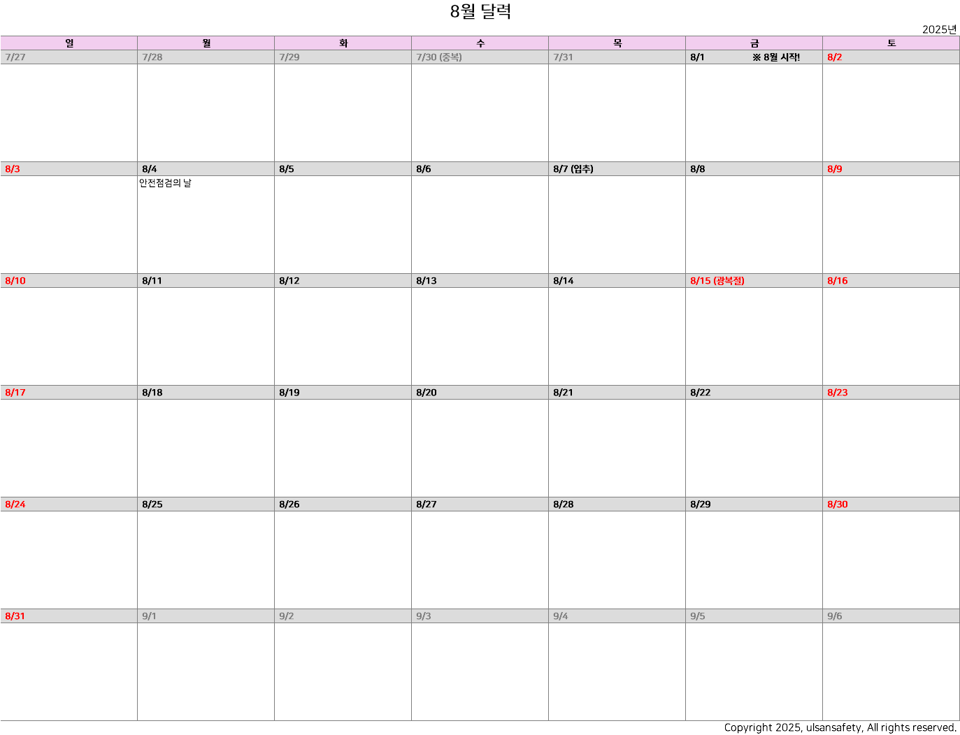 | 2025년 달력 엑셀 - 안전보건환경인을 위한 달력 |