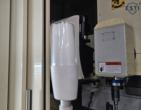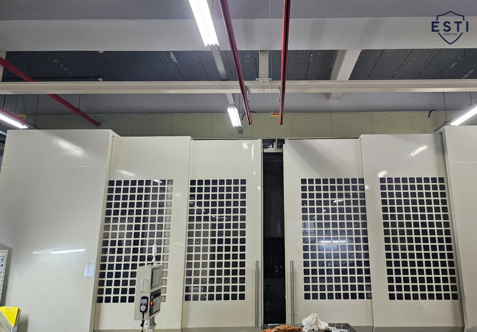 밀링기 제작시 사용되는 재료나 강도 등 설계 및 사용조건에 적합한 구조로 설계됨을 확인합니다. 해당 밀링기는 자동밀링기로 사진과 같이 탈락되는 부품과의 충돌에너지를 흡수 할 수 있는 강도의 가드로, 칩 비산에 의한 위험이 없고, 접근 불가능한 밀폐식 구조로 설치되었는데요, 폴리카보네이트 재질의 투시창을 마련해 절삭작업의 관찰이 가능했으며 리미트 스위치의 설치로 함부로 접근할 수 없도록 하는 연동시스템 함께 확인할 수 있었습니다. 추가로 작업영역 내 조명 설치로 300lux 이상의 조도도 확보해두었습니다.
