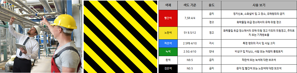 색의 강점을 활용하여 보다 쉽게 안전 정보를 작업자에게 전달하고 있습니다.