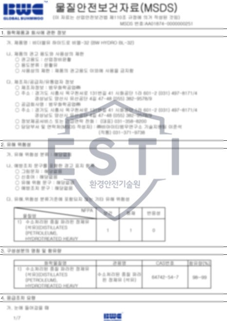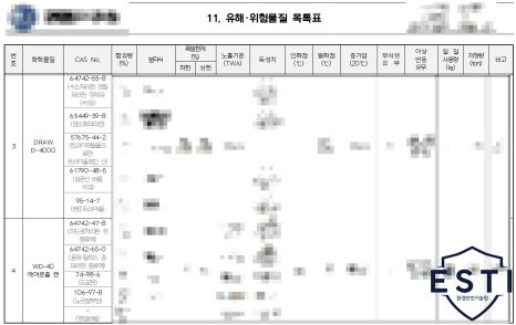 유해위험물질 목록표에 작성된 물질들에 대한 물진안전보건자료(MSDS)도 함께 제출되어야 합니다.