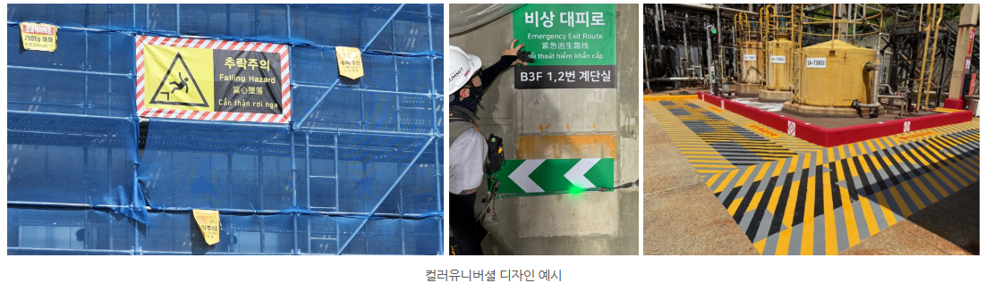 컬러유니버설디자인(CUD) 기반의 안전 색채 디자인을 실현하며,