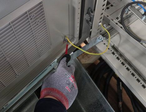 ⇒ 자율안전확인신고를 위한 핵심 과정, 전기안전시험입니다. 전기적 안전성 확보를 위한 목적으로, 접지의 적절성을 확인하게 되며 도어, 컨트롤패널 등에 10A이상의 전류를 인가한 후 최대 전압강하값이 각 접지선 단면적에 따른 기준 값을 초과하는지 않는지 체크합니다.