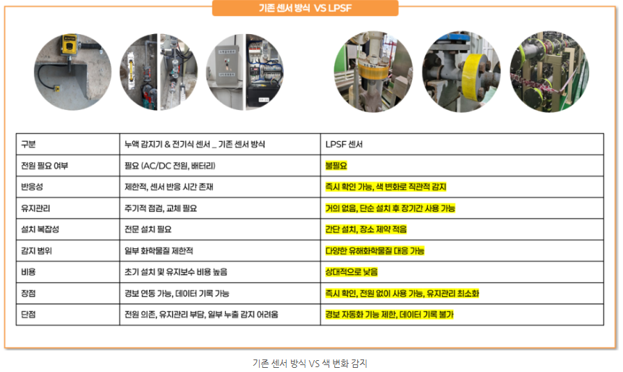 누출 발생 즉시 색 변화로 위험을 시각화함으로써