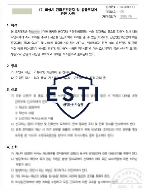 | - 비상상태 발생시 설비운전정비 절차 - 비상경보, 대피, 재해자 응급조치 |