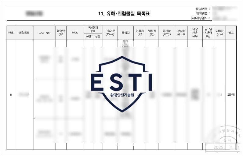 ◼️ 유해위험물질 목록표