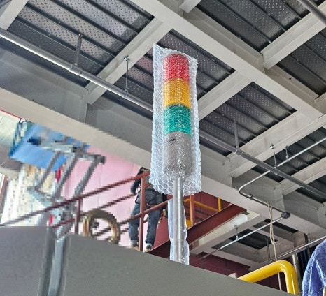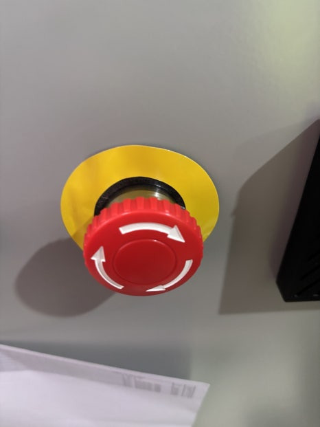 ▶ 황색 배경에 적색 액추에이터의 비상정지버튼과 기동예고장치도 확인하며 혼합기의 위험성평가, 방호장치 확인 완료했습니다.