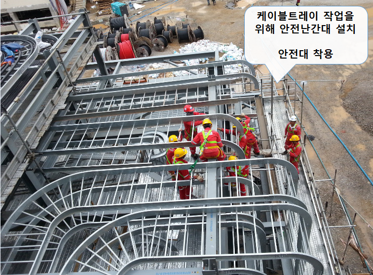 케이블트레이 시공 작업 시 위험성과 우수사례를 사진으로 정리해 보았다. 우리가 관리하고 있는 작업 공정에서 이런 위험성이 있는지? 개선이 필요한 사항은 없는지 다시 한번 더 챙겨 볼 필요가 있겠다.