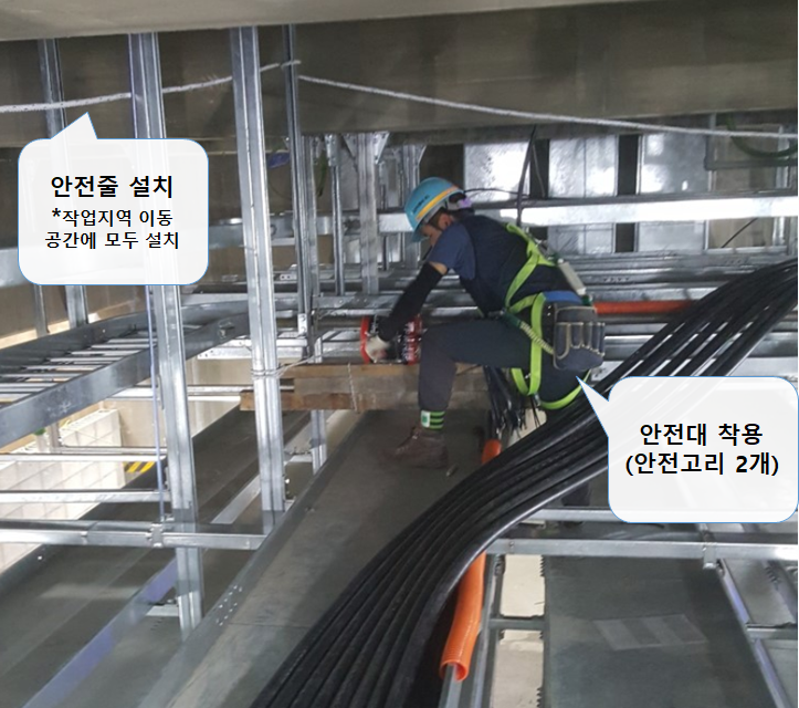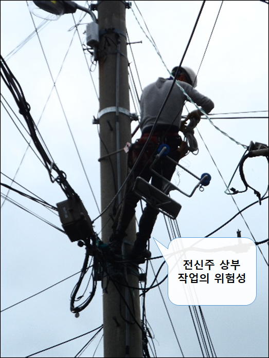 그러나, 1~2가닥을 포설하는 공사라고 쉽게 생각하면 안된다. 신설공사만큼의 추락위험은 동일하게 상존한다. 사고는 우리가 보지 못하는 곳에서 발생하기 마련이다. 현장 시공계획서에서 이 부분에 대한 확인이 필요하고 시공 작업 시에는 관찰을 통한 지도를 해 나가야 한다. 케이블 포설작업은 순식간에 휙~하고 지나가 버리기 마련이다.