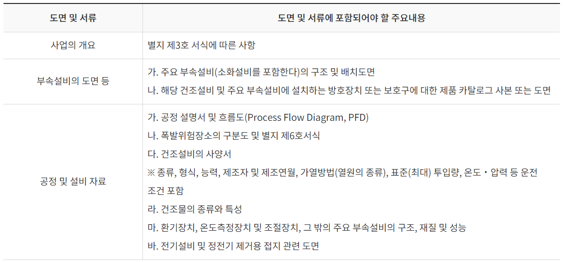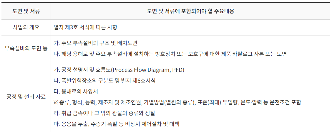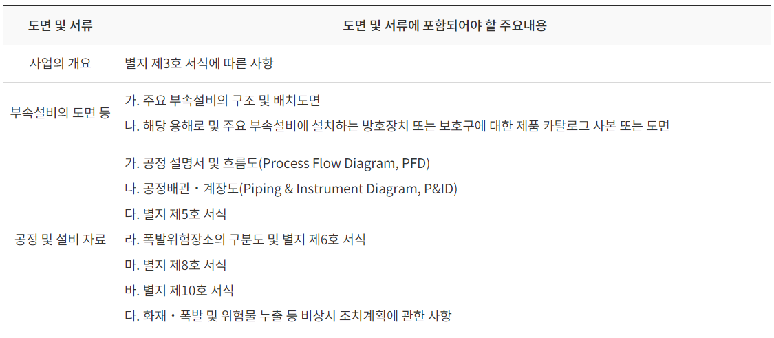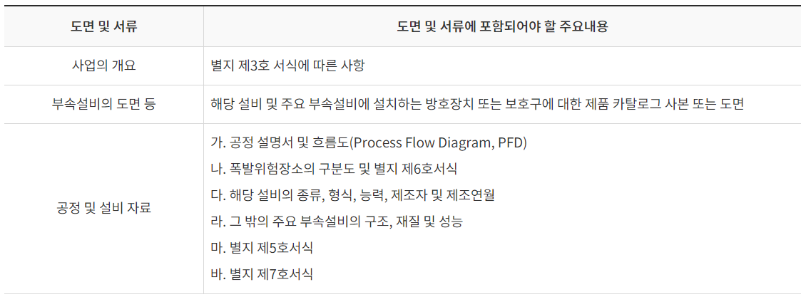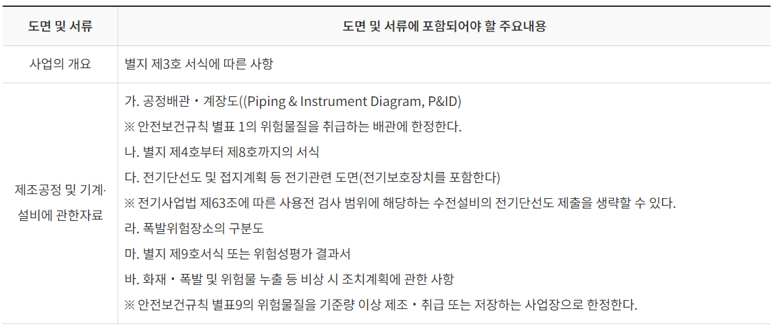 ※ 별지의 각종 서식은 고용노동부고시「제조업 등 유해ㆍ위험방지계획서 제출ㆍ심사ㆍ확인에 관한 고시(제2017-60호)」를 참고 바랍니다.