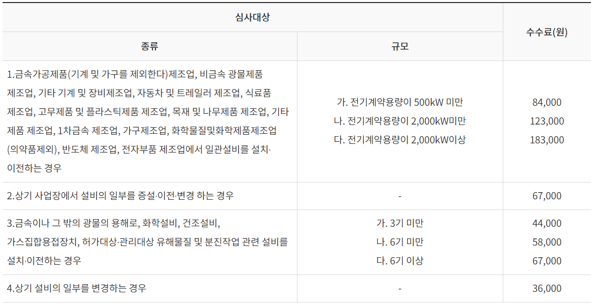 3) 건조설비 : 열원 기준으로 연료의 최대소비량이 시간당 50킬로그램 이상이거나 최대소비전력이 50킬로와트 이상인 다음의 설비를 설치·이전·변경하는 경우