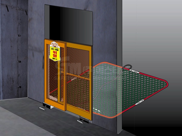 만약, 승강기 출입구 자재 등 낙하, 비래물 발생 위험이 있으면 안전망도 추가로 설치합니다.